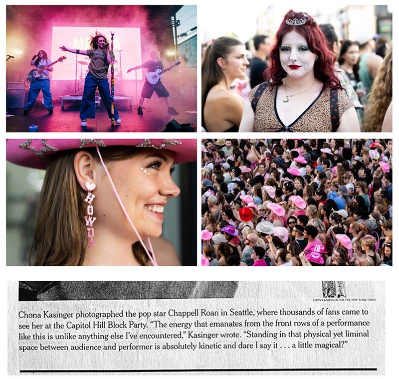 For The New York Times: I was thrilled to get the call to photograph Chappell Roan at Capitol Hill Block Party. The editors even included a photo in their outtakes column, Inside Culture, and let me talk about magic in an international newspaper.